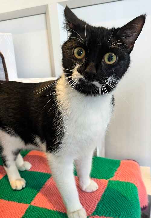 Sam was bought to be a companion to an owner who thought a cat would help with her mental health problems, but unfortunately having a pet to look after and worry about made things worse, so sadly Sam has been given up for rehoming. He is a very sweet boy, a little bit skittish, and very playful. He is still very young and would really benefit from the company of a kind cat who is looking for a friend to play with. Sam should be fine with older, gentle children who can give him a bit of space and time to settle in.