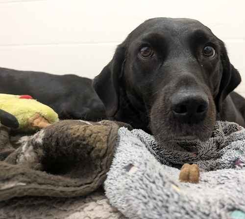 Kimi sadly came to us severely overweight and was nicknamed the barrel. She was struggling to walk and after further investigation it was discovered, she unfortunately has luxating patella in both her knees. Due to Kimi being energetic she jumps around in her kennel, bouncing off the walls, making the recovery post-surgery not possible, so she is kept comfortable with medication and is doing well on it. Since finding her love for walks and balls she has managed to shed the weight but is still in need of shedding those last few kilos. Kimi is absolutely obsessed with her toys and mainly balls. You will always find her with a ball in her mouth, whether she is out on a walk or laying in her bed she will have a toy. She treats it as a comfort blanket and wherever she goes, a toy will go with her. Kimi is great with the people she knows however it can take time to build up trust with her. Kimi does enjoy a fuss and some attention but only on her terms and only for a short period. Kimi is happiest being near and with you rather than on you like a lap dog. Kimi likes her own space, but likes to know you are around, so would prefer to sit in her bed surrounded by her toys with you in her eyesight so she knows she is not alone. One of Kimi’s rare features which we all love, if she allows you to sneak a glance is her ‘pig skin pads on her paws. Kimi is looking for an experienced adult only home with no other pets. Kimi needs an owner who will give her the time and patience she will need to earn your trust and to settle in to a home environment.