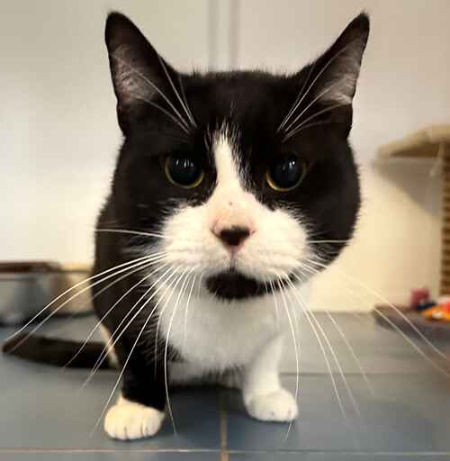 Squeak is a very sweet cat who spent the first part of her life with an owner who loved her but wasn't very well and so her environment could be quite chaotic. Unfortunately she is now nervous of men and is looking for a very loving home with a patient, gentle woman. After a couple of days of settling in, Squeak has come out to see me and is ridiculously affectionate, giving big kisses and head butts. She will make a really sweet, homely companion for a kind new owner in a home with no other pets. She hasn't met children and is scared of loud noises, so an adult only home would suit her very well, or a home with much older, very gentle children.