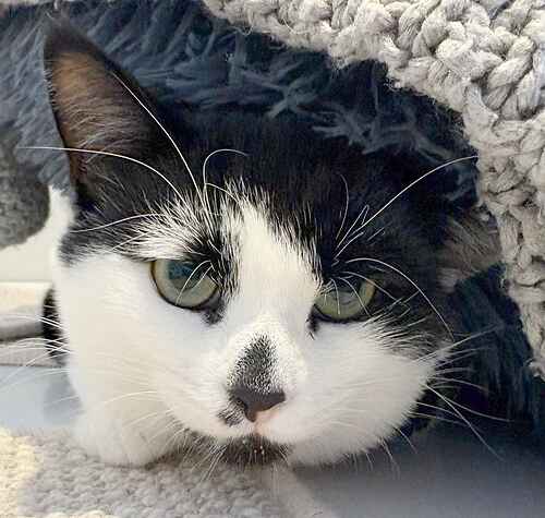 Cotton has come to us recently through no fault of his own. He is really struggling to adjust to cattery life and so he spends most of his day hiding and hasn't been able to get to know us yet. At this moment Cotton isn't 100% himself so it's hard to know what he would be like in a home but we do know he has lived with other cats before. Ideally, he will need a patient owner in a quiet home who will let him come out of his shell in his own time.