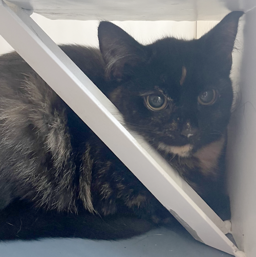 Belle was handed in as a stray; she is very nervous and unsure of the world. She will need a patient owner to give her lots of time to settle and adjust. Belle could possibly go with another cat. She could go with calm children. If you're interested in meeting Belle then please pop into our New Romney branch.