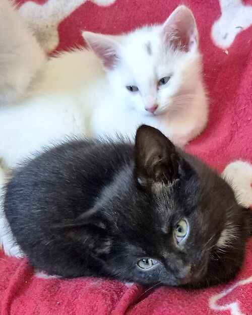 Jinny and Slinky were left at a vet surgery and taken home by one of the vets. Unfortunately his landlord will not allow him to keep the girls and so they have come to us to find a loving home of their own. The girls are sweet lap cats, Slinky is particularly cuddly. They love to play and also curl up together for a snooze. These two should be fine with very cat friendly dogs, cats and very gentle older children who are able to give them some time and space to get settled in their new home. Jinny and Slinky should be a very sweet pair of family cats.