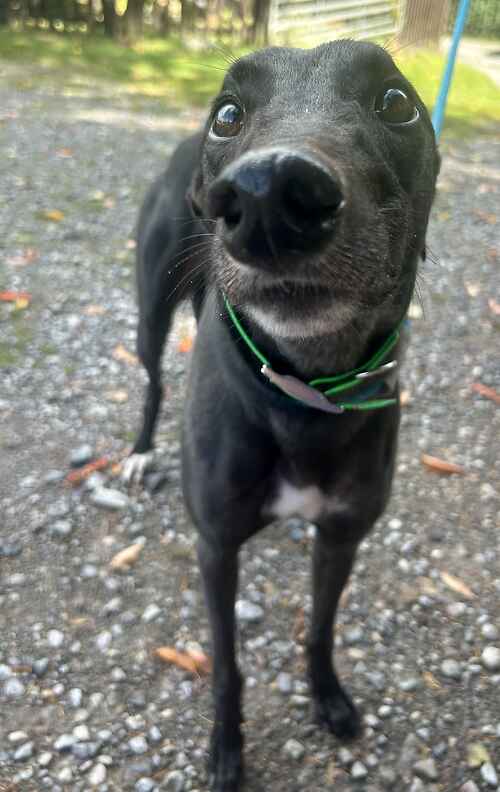 Dewey is a very happy girl! She absolutely loves to be around people and is always wagging her tail when she sees you. She is an ex-racer so cannot be homed with cats, small furry animals and small dogs, especially fluffy ones. She has found her love of toys since being at last chance and will throw them around to herself. She will need a safe and secure garden for her to do zoomies in!
