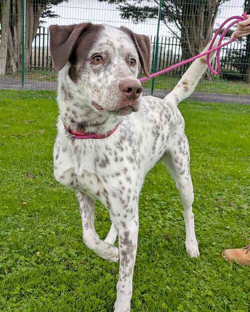 Penny is still finding her feet here in our kennels but is a very happy girl. She is always wagging her tail and wants to say hello to everyone. She would need slow socialising with other dogs and must be the only pet in the home. Penny came in as a stray from the pound so no history is known prior so no young children. She can be energetic but walks nicely on the lead so would need an active owner.